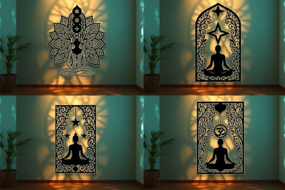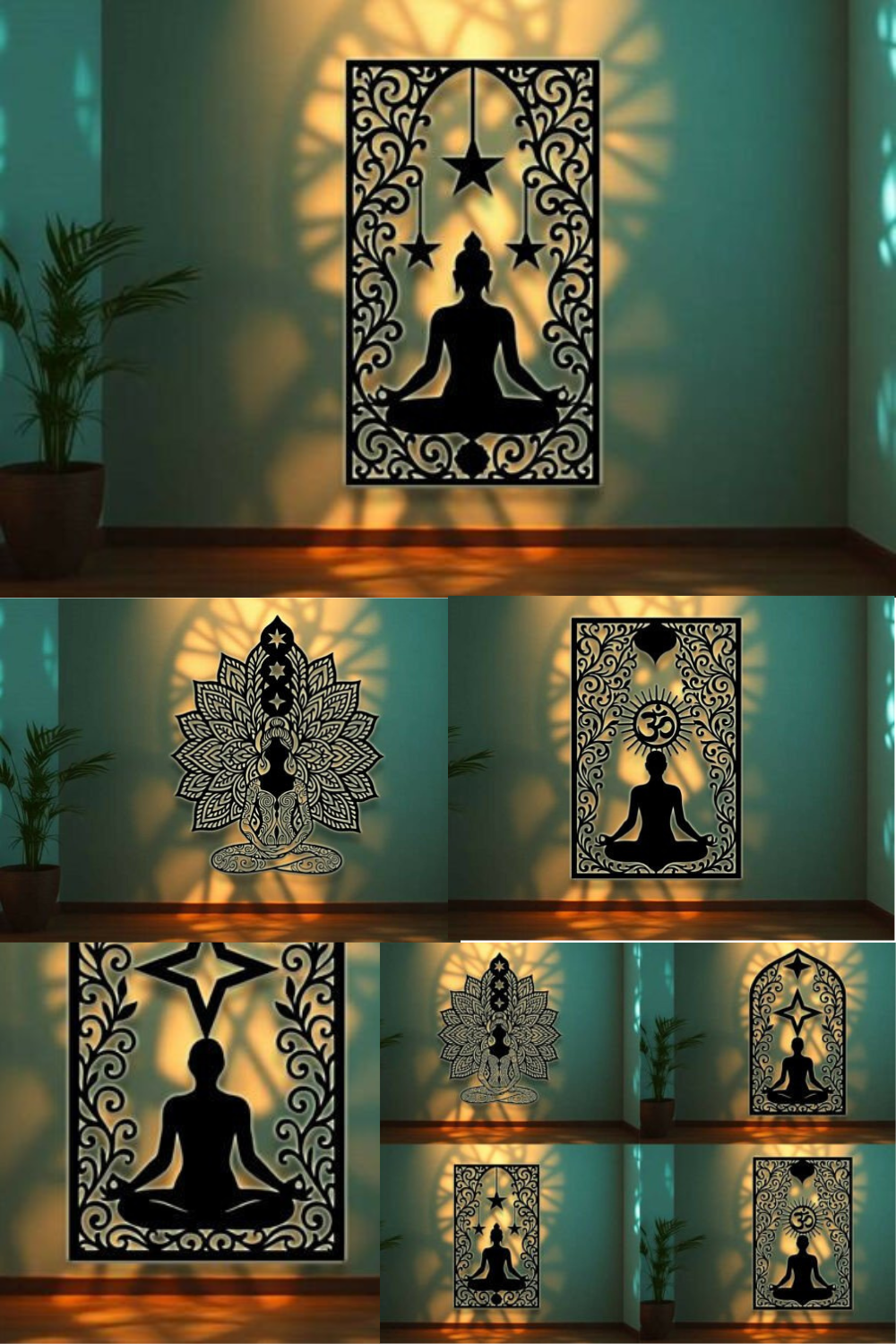 The set includes SVG and DXF formats, making it easy to create elegant wood signs or spa plaques. It is a wonderful way to produce high-quality decorative elements that enhance the atmosphere of any yoga room or home sanctuary.
